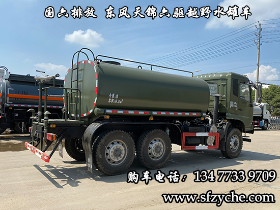 國六排放潤知星牌SCS5165GPSDFV6型六驅越野綠化噴灑車_東風天錦六驅森林消防水罐車_六驅園林綠化灑水車主要用于城鄉(xiāng)園林綠化灑水,噴藥等;主要裝置為水罐及泵.隨底盤選裝駕駛室.罐體有效容積8.7立方米.罐體外形尺寸(長×長軸×短軸)(mm) 4200×2350×1300.側、后防護材料為Q235B,側、后防護與車架焊接連接.后部防護裝置斷面尺寸(寬×高)50×120(mm),后部防護離地高度:460mm.ABS型號/生產廠家:3631010-C2000/東科克諾爾商用車制動系統(tǒng)(十堰)有限公司。東風天錦六驅越野綠化灑水車上裝配置:罐體采用優(yōu)質碳鋼QB235板材,板材厚度4mm,罐體容積8.7立方,安裝取力器,60-90威龍大功率水泵可泵進泵出,后置工作平臺帶水炮射程25米,消防栓接口左右各一個,選裝駕駛室頂部安裝長條警燈帶喊話器,全車顏色軍綠,兩側噴涂白色森林消防字樣等。