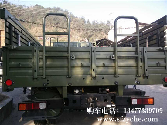 東風(fēng)國(guó)五天錦EQ1120GA2型運(yùn)兵車,4×2驅(qū)動(dòng),D530平頭一排半平頂駕駛室,,軸距3800mm,康明斯ISD245 50國(guó)五排放245馬力,6.7升發(fā)動(dòng)機(jī),八擋變速箱,帶電加熱(預(yù)熱塞)冷起動(dòng)裝置,全鋼全鋼 主油箱160L,80L副油箱,Φ395mm推式膜片彈簧離合器,東風(fēng) 4.5噸前橋,9噸后橋,主減速比5.286,車架斷面250×80×(7+4)mm,鋼板彈簧片數(shù)7/9+6,9.00R20鋼絲胎,電動(dòng)玻璃升降器,中控門鎖,通道式儀表板,帶空調(diào),車廂內(nèi)部尺寸為4950x22325x600mm鐵木混合結(jié)構(gòu),邊板帶坐凳,板材采用國(guó)標(biāo)鋼材,邊板1.2mm,底板為3mm的花紋鋼板,車廂底橫梁用槽鋼加固,車廂縱副梁全槽鋼結(jié)構(gòu),能滿足客戶運(yùn)輸重型貨物,適應(yīng)部隊(duì)野外使用及冰雪路面行駛要求。全面繼承東風(fēng)40多年軍車越野車制造經(jīng)驗(yàn),動(dòng)力總成匹配合理,生產(chǎn)技術(shù)成熟穩(wěn)定,整車車輛全面通過軍檢。