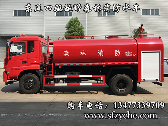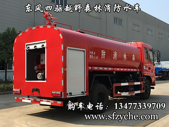 東風新款四驅越野森林消防灑水車_東風11.1噸四驅消防水車_國五四驅越野森林滅火水車_東風4×4越野SCS5183GPSEQ型四驅綠化噴灑車簡介:采用東風EQ2180GD5DJ型越野汽車底盤,東風D913新款駕駛室,4×4驅動,康明斯ISB190 50國五發(fā)動機,六檔變速箱,東風商用車橋,前驅動橋3.8噸,后橋10噸,10.00R20輪胎,軸距4500mm,電動玻璃,方向助力,斷氣剎,ABS。罐體采用優(yōu)質(zhì)碳鋼Q235板材,板材厚度4mm,罐體容積11.1立方,安裝夾心取力器,后置泵箱,消防栓接口左右各一個,消防炮采用PS30-50D消防水炮,流量40L/S/1.0MPa 水射程:≥50m,消防泵采用常壓消防泵型號:CB10/40車用消防泵,流量:40L/s,壓力:1.0MPa,帶前沖,駕駛室頂部安裝長條警燈帶喊話器,全車顏色橘紅,兩側噴涂白色森林消防字樣。