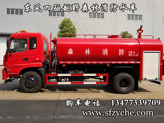 東風(fēng)四驅(qū)越野森林消防水罐車_東風(fēng)11.1噸四驅(qū)消防水車_國五四驅(qū)越野森林滅火水車_東風(fēng)4×4越野SCS5183GPSEQ型四驅(qū)綠化噴灑車簡介:采用東風(fēng)EQ2180GD5DJ型越野汽車底盤,東風(fēng)153寬體駕駛室(選裝D913新款駕駛室),4×4驅(qū)動,康明斯ISB190 50國五發(fā)動機(jī),六檔變速箱,東風(fēng)商用車橋,前驅(qū)動橋3.8噸,后橋10噸,10.00R20輪胎,軸距4500mm,電動玻璃,方向助力,斷氣剎,ABS。罐體采用優(yōu)質(zhì)碳鋼Q235板材,板材厚度4mm,罐體容積11.1立方,安裝夾心取力器,后置泵箱,消防栓接口左右各一個,消防炮采用PS30-50D消防水炮,流量40L/S/1.0MPa 水射程:≥50m,消防泵采用常壓消防泵型號:CB10/40車用消防泵,流量:40L/s,壓力:1.0MPa,駕駛室頂部安裝長條警燈帶喊話器,全車顏色橘紅,兩側(cè)噴涂白色森林消防字樣。
