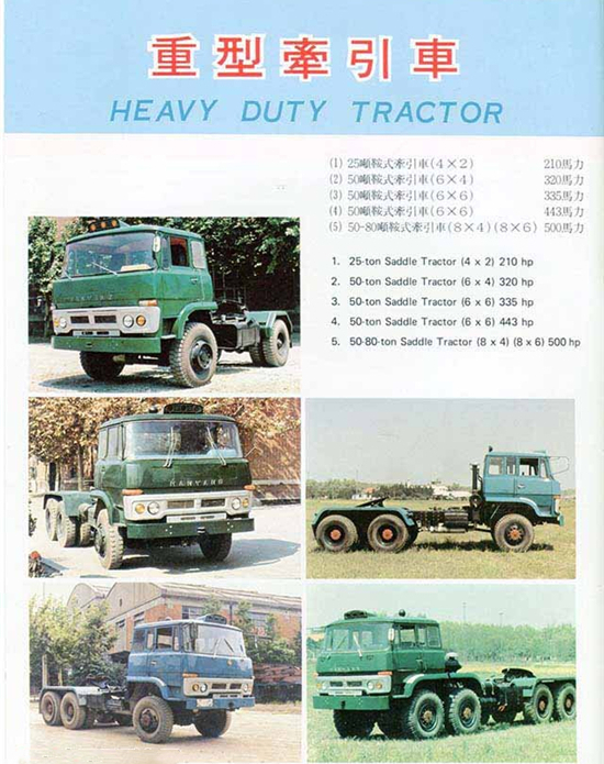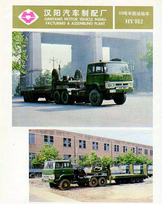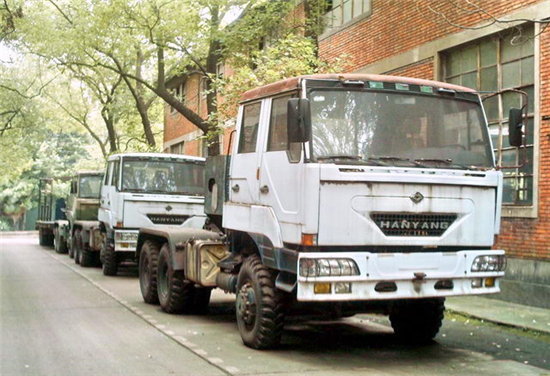 漢陽特種汽車制造廠生產(chǎn)軍用車的歷史可以追溯至上世紀(jì)60年代。當(dāng)時(shí)該廠完成了魚雷運(yùn)輸車的試制任務(wù),從而步入軍工生產(chǎn)的行列,隨后漢陽又開發(fā)了導(dǎo)彈運(yùn)輸車、舟橋車等軍用車。進(jìn)入到上世紀(jì)70年代,隨著我國(guó)汽車工業(yè)缺重少輕的矛盾日漸突出,漢陽在1972年研制成功了HY470型25噸4x2重型半掛牽引車,1979年,又成功開發(fā)出50噸的6x4牽引車。