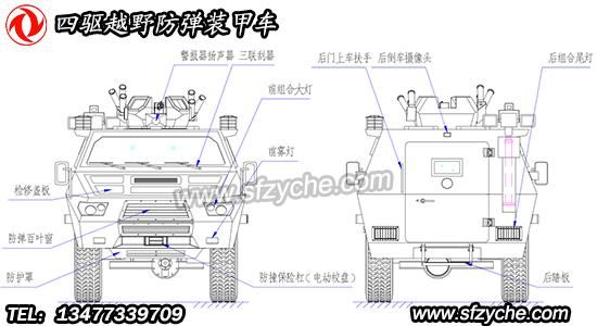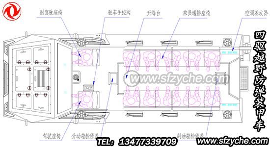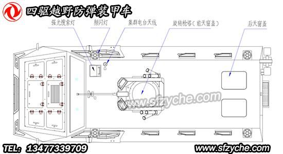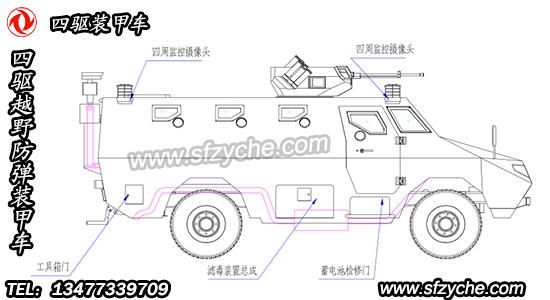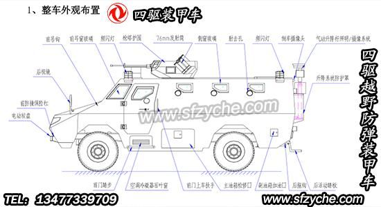 四驅(qū)防爆裝甲車詳細布置圖如下: