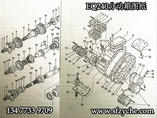 東風(fēng)六驅(qū)軍車EQ240主要分動箱配件有:主動軸、高檔主動齒輪、后橋驅(qū)動軸、高檔從動齒輪帶小齒、低檔從動齒輪帶小齒、中間軸中后橋驅(qū)動齒輪、中橋驅(qū)動軸齒輪、中橋驅(qū)動軸、前橋驅(qū)動軸嚙合套、中間軸、前橋驅(qū)動軸、半圓鍵、滑動齒套限位彈簧、換擋齒套限位鋼球、高低擋滑動齒套、7208軸承、主動軸軸承7308、7309軸承、7608軸承、9249/54軸承帶隔套、分動箱油封、分動箱叉形凸緣總成、分動箱外殼加蓋總成、前加力總成、前橋驅(qū)動軸外殼等。