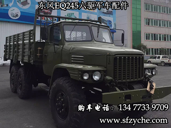 東風(fēng)尖頭六驅(qū)EQ245(EQ2100E6D)軍車配置:驅(qū)動(dòng):6×6,老款尖頭雙塊玻璃駕駛室,發(fā)動(dòng)機(jī):康明斯EQ6BT5.9國(guó)二大泵六缸柴油、160馬力增壓,變速箱:韶齒五檔變速箱,3.5噸杭齒分動(dòng)箱帶高低檔,軸距:3475+1250mm,前橋3.7噸、中橋4噸、后橋4噸,車架梯形結(jié)構(gòu),輪胎:12R20(6+1條),其它:后牽引鉤、方向助力、斷氣剎。