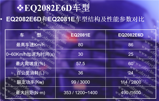 EQ2082E6D型二噸半越野汽車是EQ2081E(EQ240)車型的改進(jìn)型,2000年9月設(shè)計(jì)定型,2001年4月投產(chǎn)。該車型以EQ2081E為基礎(chǔ),針對(duì)EQ2081E車型多年來(lái)在使用中所暴露出的問(wèn)題與不足,并充分利用東風(fēng)公司近年來(lái)在其它車型上研制開發(fā)的成熟總成及結(jié)構(gòu),主要進(jìn)行了如下8項(xiàng)改進(jìn)設(shè)計(jì):1.換裝康明斯6BT5.9型降扭矩增壓柴油發(fā)動(dòng)機(jī)、2.采用350膜片彈簧離合器,液壓氣助力操縱、3.采用動(dòng)力轉(zhuǎn)向系統(tǒng)、4.采用吊掛式踏板操縱機(jī)構(gòu)、5.采用電動(dòng)雨刮器 、6.采用24V電氣系統(tǒng)及符合法規(guī)的新式電器、儀表和開關(guān)、 7.改進(jìn)駕駛室總成、8.采用PTC進(jìn)氣預(yù)熱冷起動(dòng)裝置。