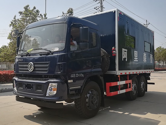 東風(fēng)六驅(qū)國五越野廂式車簡介:采用東風(fēng)原廠六驅(qū)國五越野底盤EQ2220GD5DJ型,駕駛室為老款153,新款D913兩種可以選擇,康機190馬力帶增壓,機械式六檔變速箱,3.5噸軍檢分動箱,4.5噸雙聯(lián)式軍用驅(qū)動前橋,5噸軍用貫通式雙后橋,方向助力,離合助力,前橋介入高低檔均采用電控式,315/80R22.5越野輪胎,軸距3500+1250mm,ABS,隨車工具及備胎各一套。