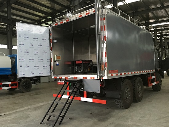 東風(fēng)六驅(qū)國五越野廂式車簡介:采用東風(fēng)原廠六驅(qū)國五越野底盤EQ2220GD5DJ型,駕駛室為老款153,新款D913兩種可以選擇,康機(jī)190馬力帶增壓,機(jī)械式六檔變速箱,3.5噸軍檢分動(dòng)箱,4.5噸雙聯(lián)式軍用驅(qū)動(dòng)前橋,5噸軍用貫通式雙后橋,方向助力,離合助力,前橋介入高低檔均采用電控式,315/80R22.5越野輪胎,軸距3500+1250mm,ABS,隨車工具及備胎各一套。