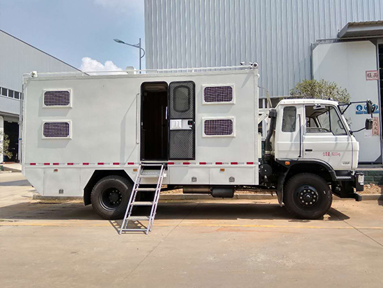 三、東風(fēng)四驅(qū)越野宿營(yíng)車(chē), 4驅(qū)越野宿營(yíng)車(chē)用途:適用公安、特警、公安、邊防、衛(wèi)生、交通、礦山、地質(zhì)、軍隊(duì)等部門(mén)]長(zhǎng)期野外作業(yè)、勘察、救援、搶險(xiǎn)、救災(zāi)等宿營(yíng)用,箱體空間利用大化。內(nèi)部配置:配備前儲(chǔ)物柜、后儲(chǔ)物柜、液晶電視機(jī)應(yīng)急燈、頂燈、頂置空調(diào)、床墊、被褥等。選裝配備8組豪華折疊臥鋪、未鋪上下梯、安全保險(xiǎn)帶、電源插口等,細(xì)節(jié)精致。外置燃油加熱器、頂護(hù)欄、前爬梯、隱藏抽拉梯、專(zhuān)用房車(chē)門(mén)、專(zhuān)用玻璃滑窗、警示燈等。