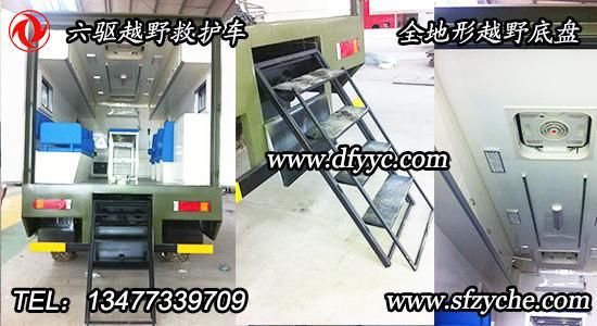 如需了解更多東風六驅(qū)越野救護車圖片,東風六驅(qū)越野醫(yī)療車價格,東風六驅(qū)越野救護車參數(shù),請立即撥打銷售熱線:13477339709 李經(jīng)理 0722-7053060 業(yè)務(wù)QQ:530233927,東風越野卡車網(wǎng)址:m.xmkmtc.com 東風越野車:www.dfyyc.com 可在此越野底盤基礎(chǔ)上改裝成越野廂式車,越野油罐車、越野灑水車、越野消防車、越野隨車吊、越野吸污車、越野平板車、越野運兵車等專用越野車型。